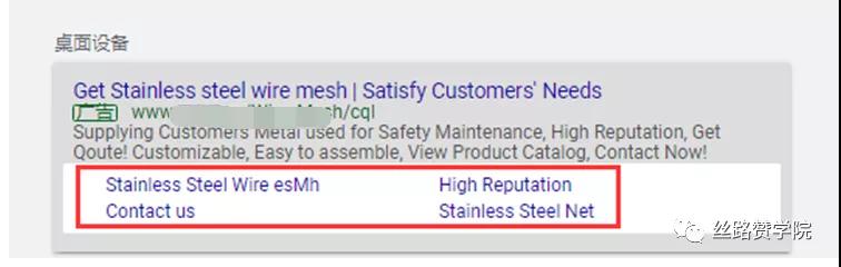广告组名称:可根据产品不同性质进行划分,如丝网的材质,规格,型号等,如不锈钢丝网、270不锈钢网等。