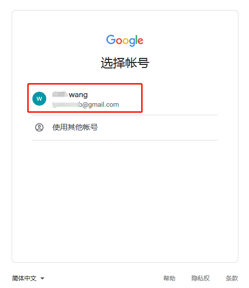 点击Sign in按钮后,就会自动账号选择页面,我们点击我们刚刚注册的账号即可。