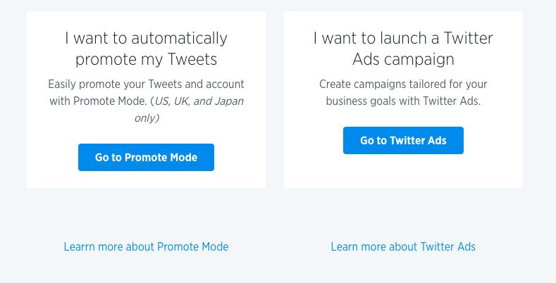 6.根据第4步中的选择,您将进入广告系列设置表单或Twitter Promote Mode设置。
