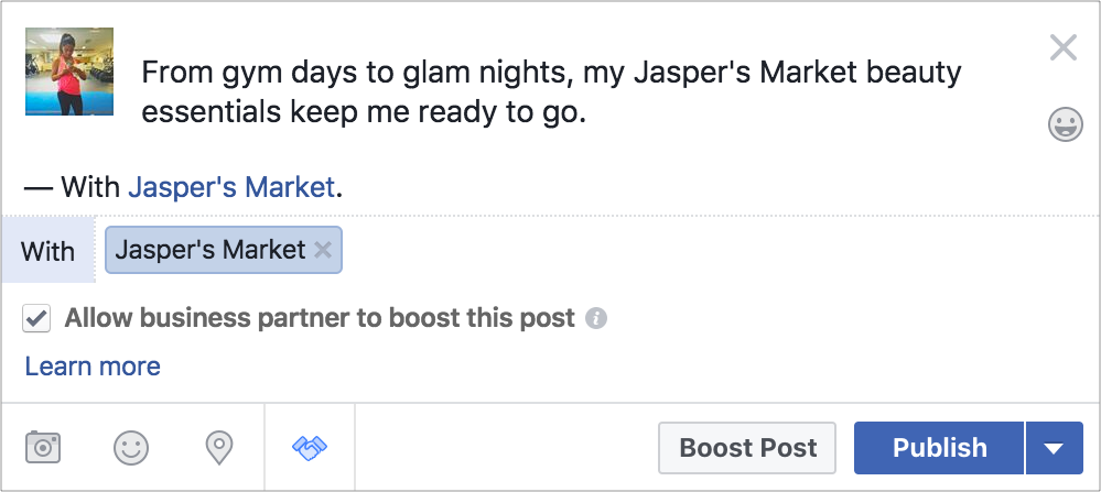 营销者可通过 Facebook 定位功能与自定义受众向合适的人群展示品牌内容,提升业务成效。内容创建者仅需在撰写帖子时授权营销者速推帖子,并使用品牌内容工具标记相关主页即可。